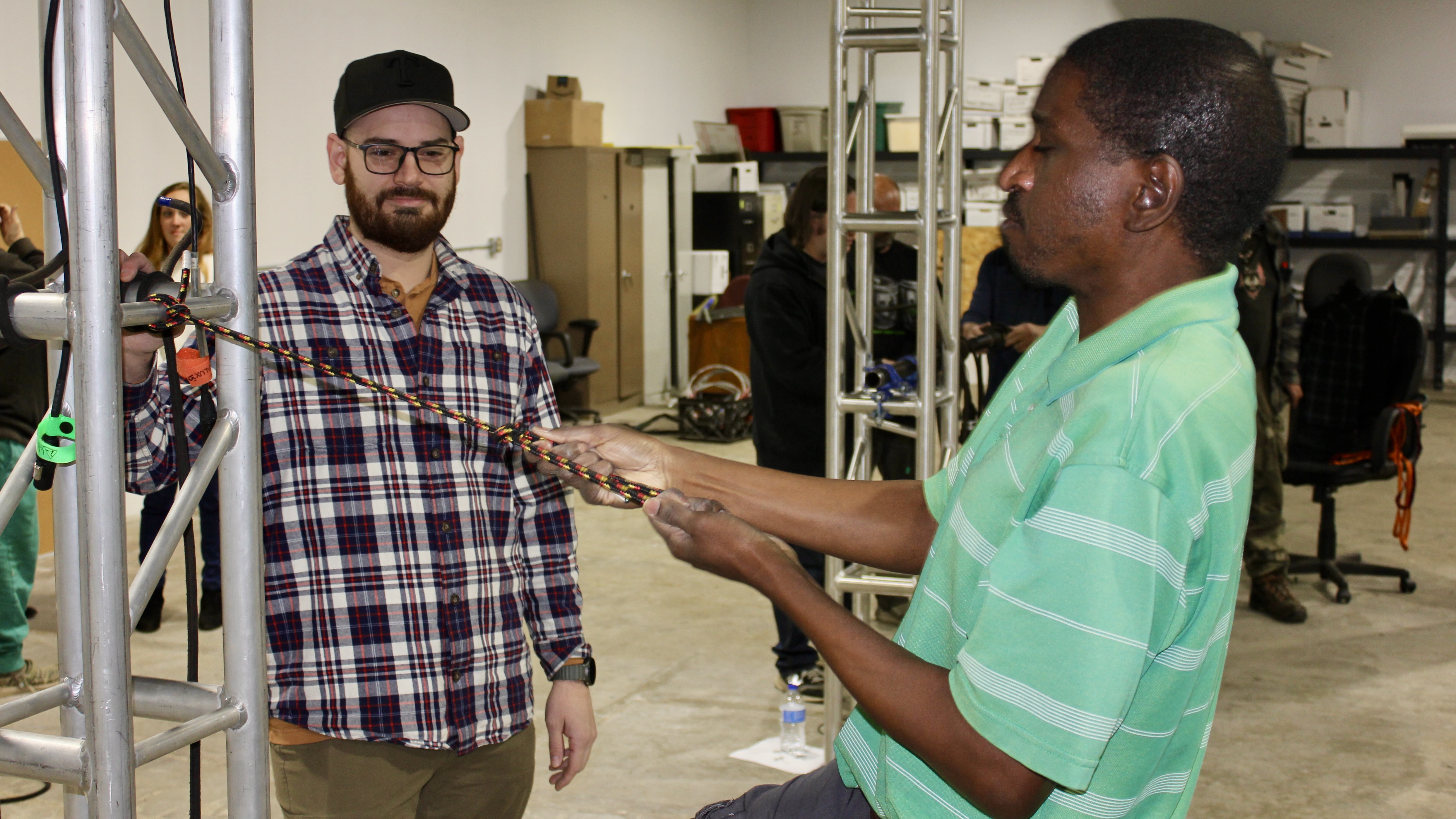 On 02/24/2026, members of IATSE 128 learned essential knots used in the industry to aid in our work.